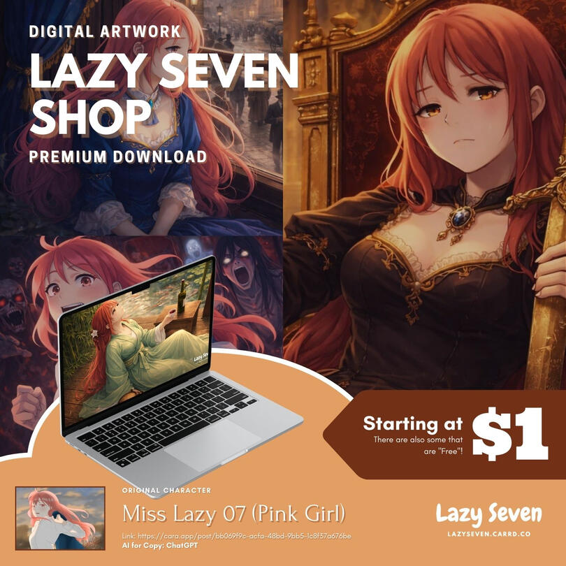 β¦ AI Image Prompt(Using Model/Original Character from Lazy Seven)* 70% Base Price* Bust-Up: $21 | Half Body : $28 | Full Body : $42---β ADD-ONS* Extra character: +50% BS/Character